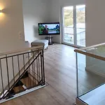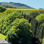 Die Ferienhaus Schieferterrasse - Waldsee Rieden - bietet allen Gästen einen Patio und einen Balkon, und ein Bügeleisen/Bügelbrett und eine Klimaanlage sowie ein Flachbildfernseher mit Satellitenkanälen stehen auch zur Verfügung. Der Innenraum ist mit einem Sofa ausgestattet und verfügt über einen Steinkamin. Zur Ausstattung des Badezimmers gehören auch eine begehbare Dusche und eine getrennte Toilette. Ein Haartrockner und Badelaken sorgen ebenfalls für ein komfortables Erlebnis.